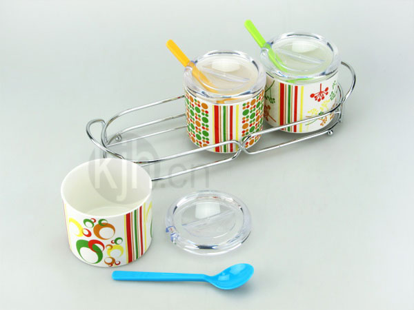 三組直身陶瓷調(diào)味杯(鋼架)(250ML*3)