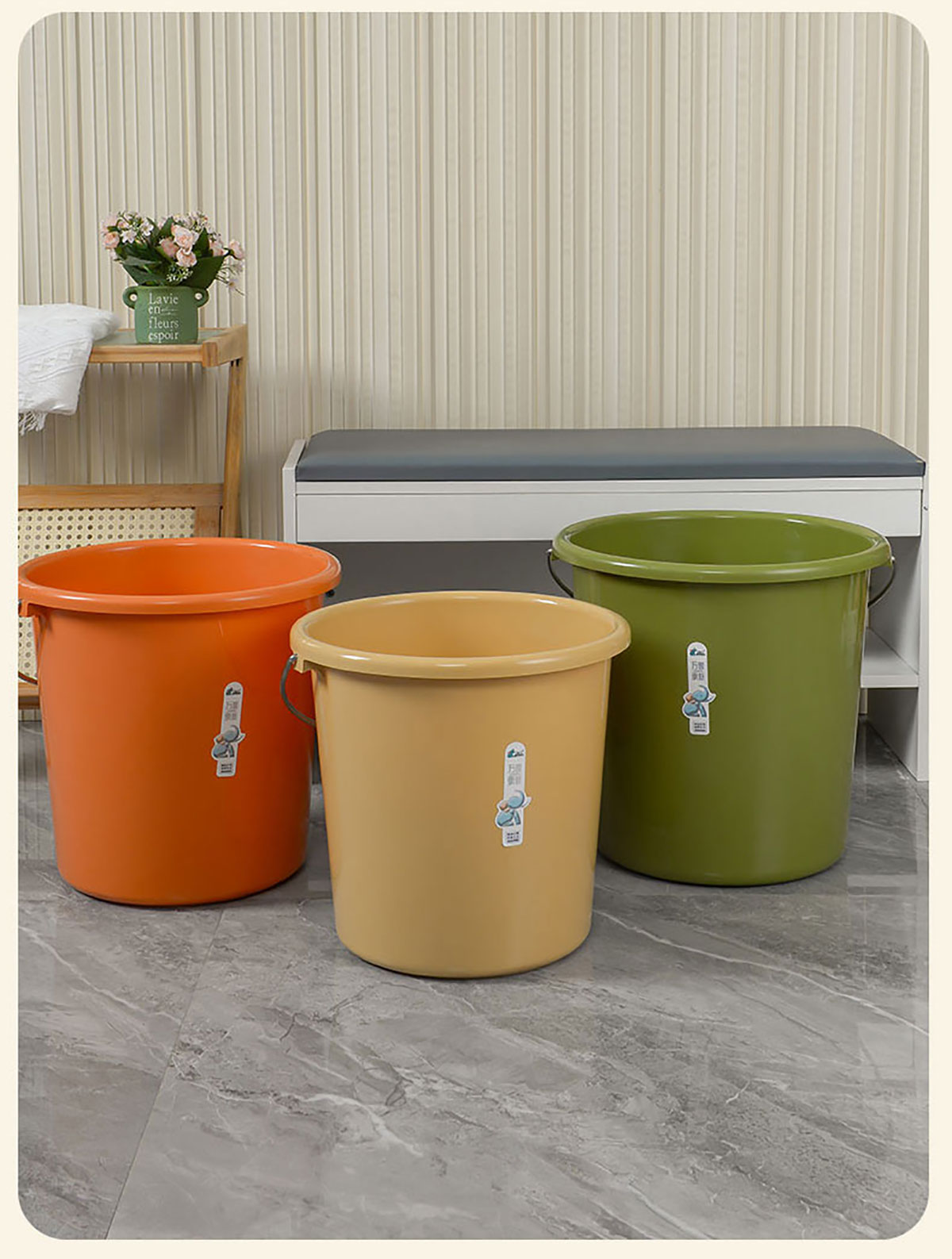 Size: DS-3066(條紋桶):350*300mm DS-3067(條紋桶):350*330mm DS-3069(鐵弓桶):330*320mm DS-3070(鐵弓桶):355*340mm