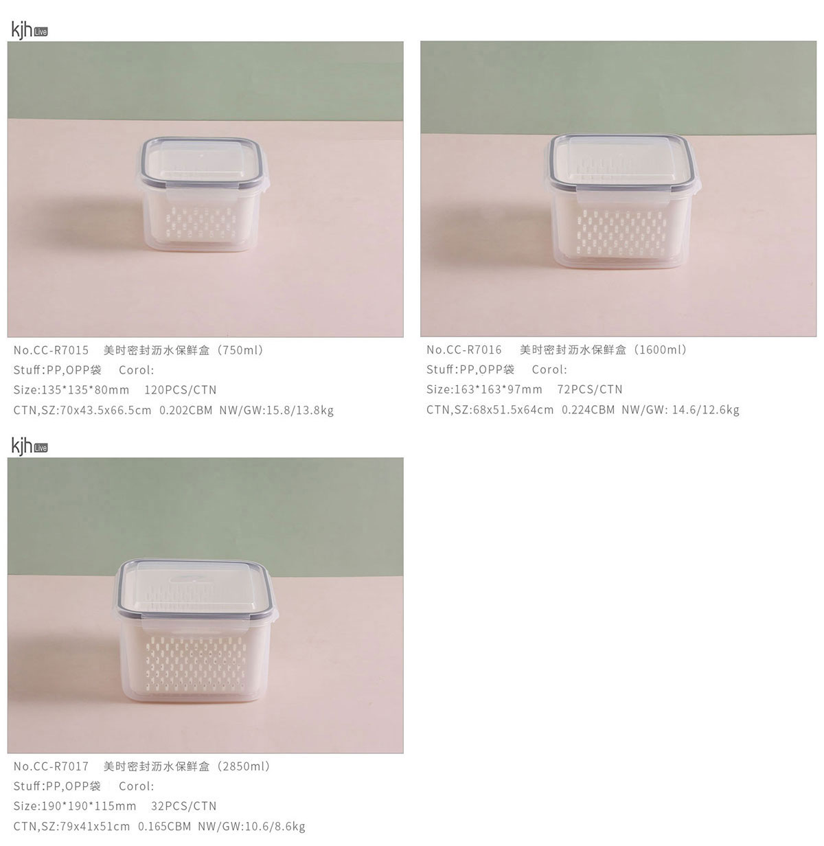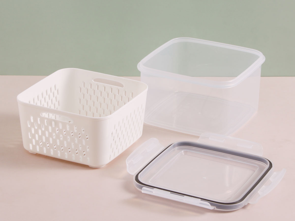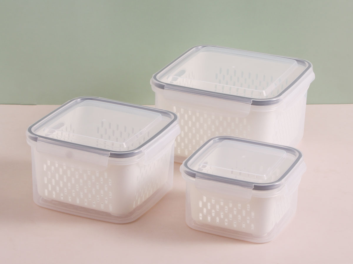美時(shí)正方形密封瀝水保鮮盒(750ml/1600ml/2850ml)