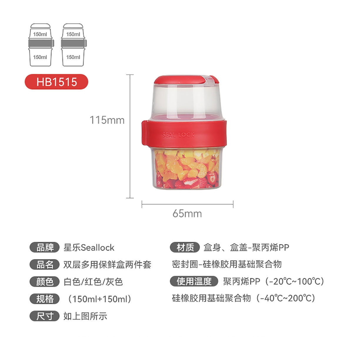 Size: SWY-HB1515:Φ65*高115mm/上層150ml+下層150ml=300ml