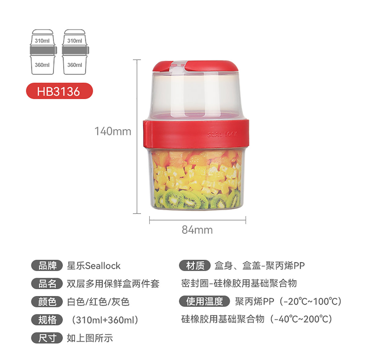 SWY-HB3136:Φ84*高140mm/上層310ml+下層360ml=670ml