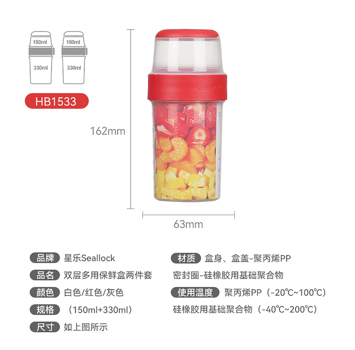 SWY-HB1533:Φ63*高162mm/上層150ml+下層330ml=480ml