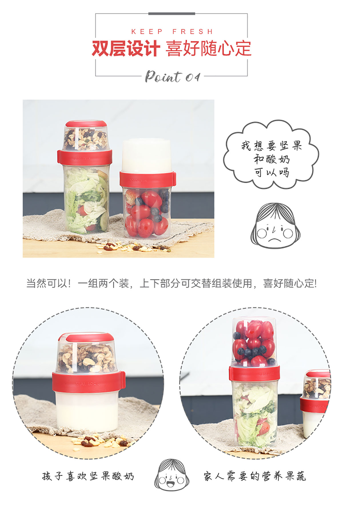 雙層多用保鮮盒300ml/480ml/670ml/870ml/1070ml