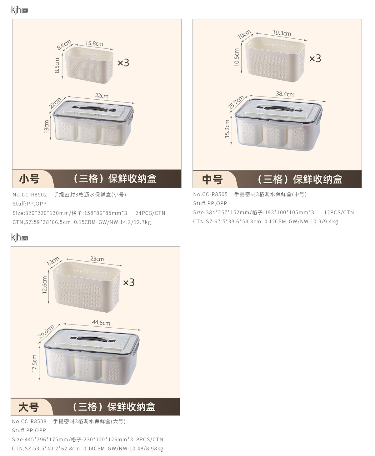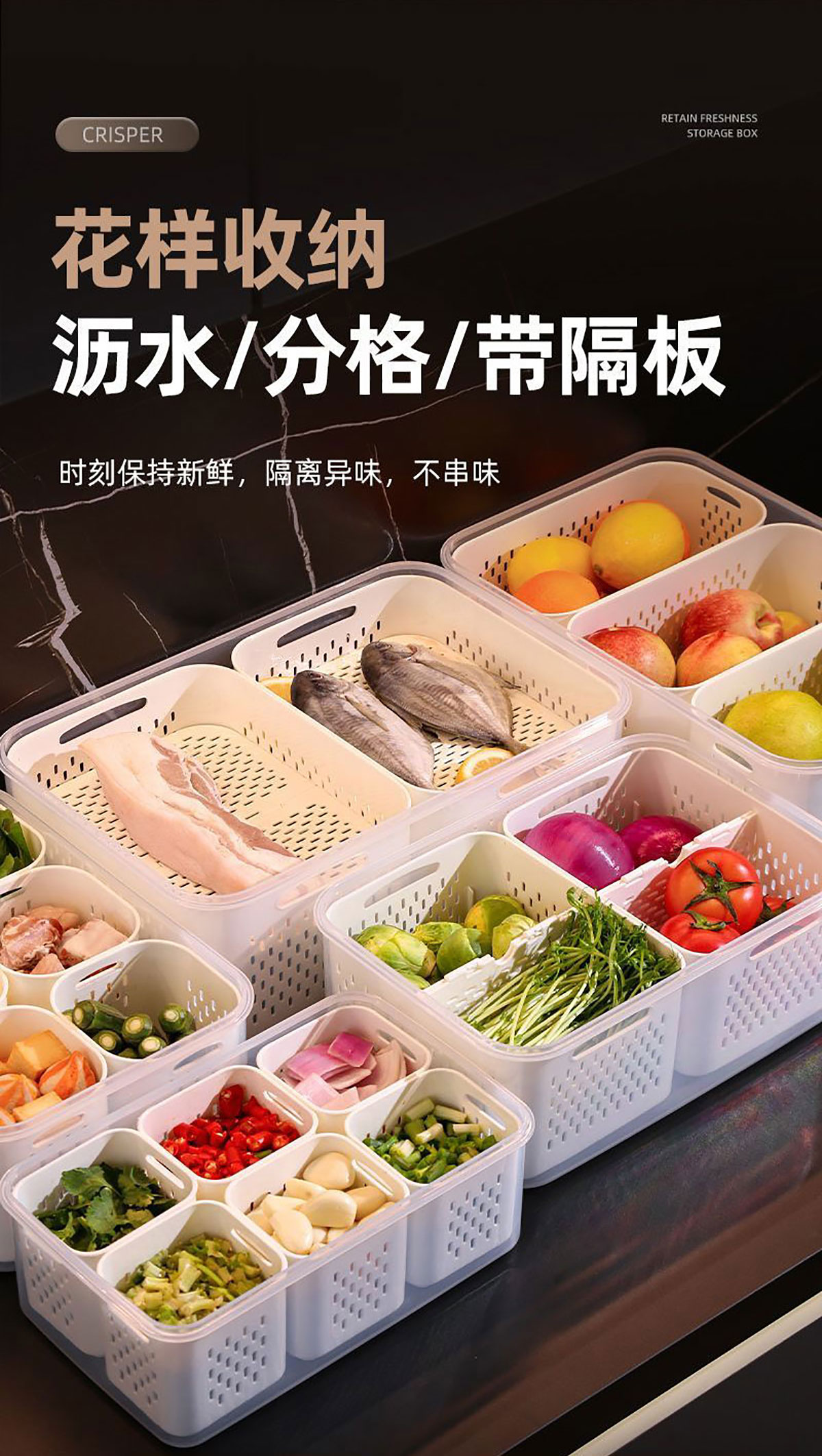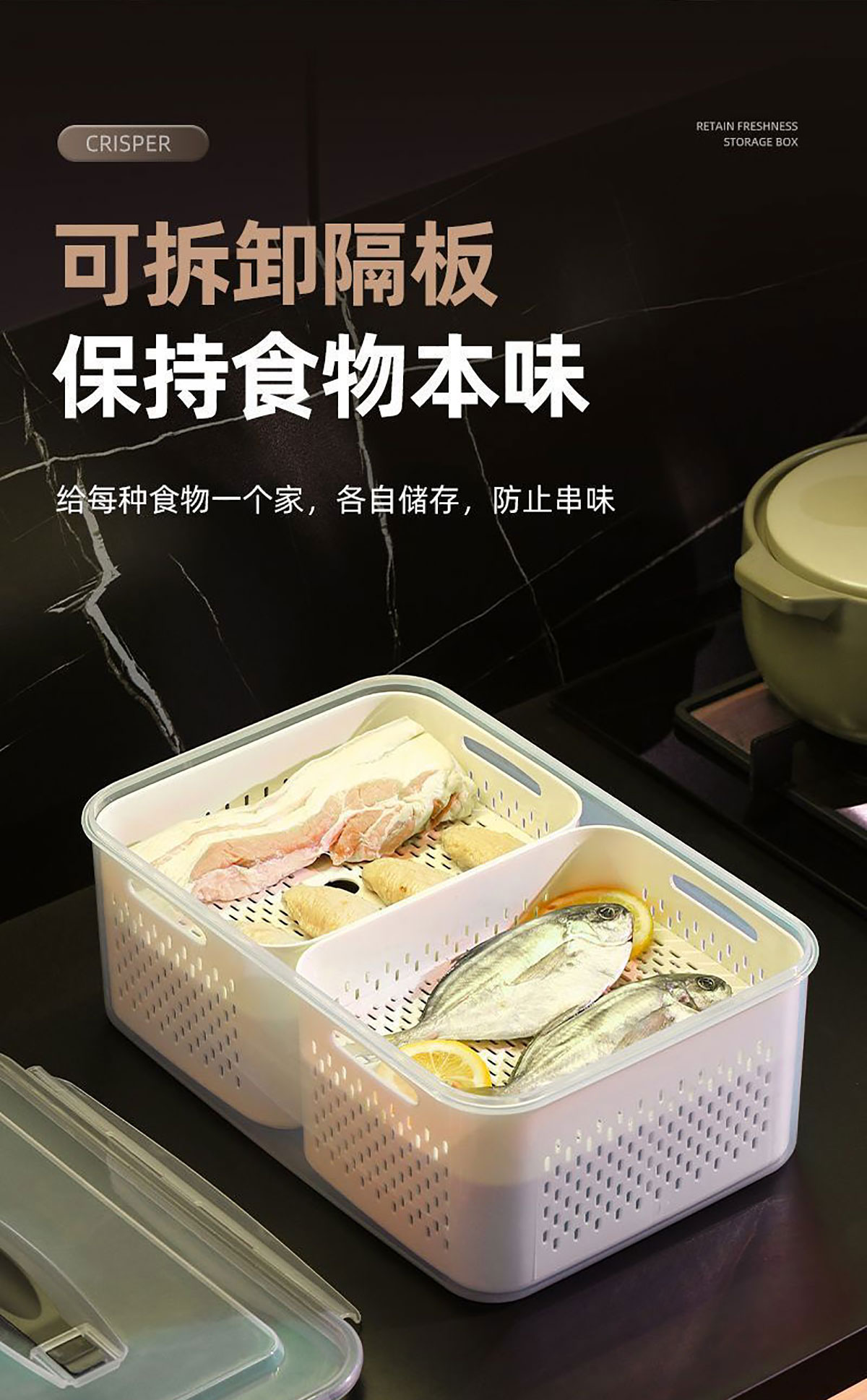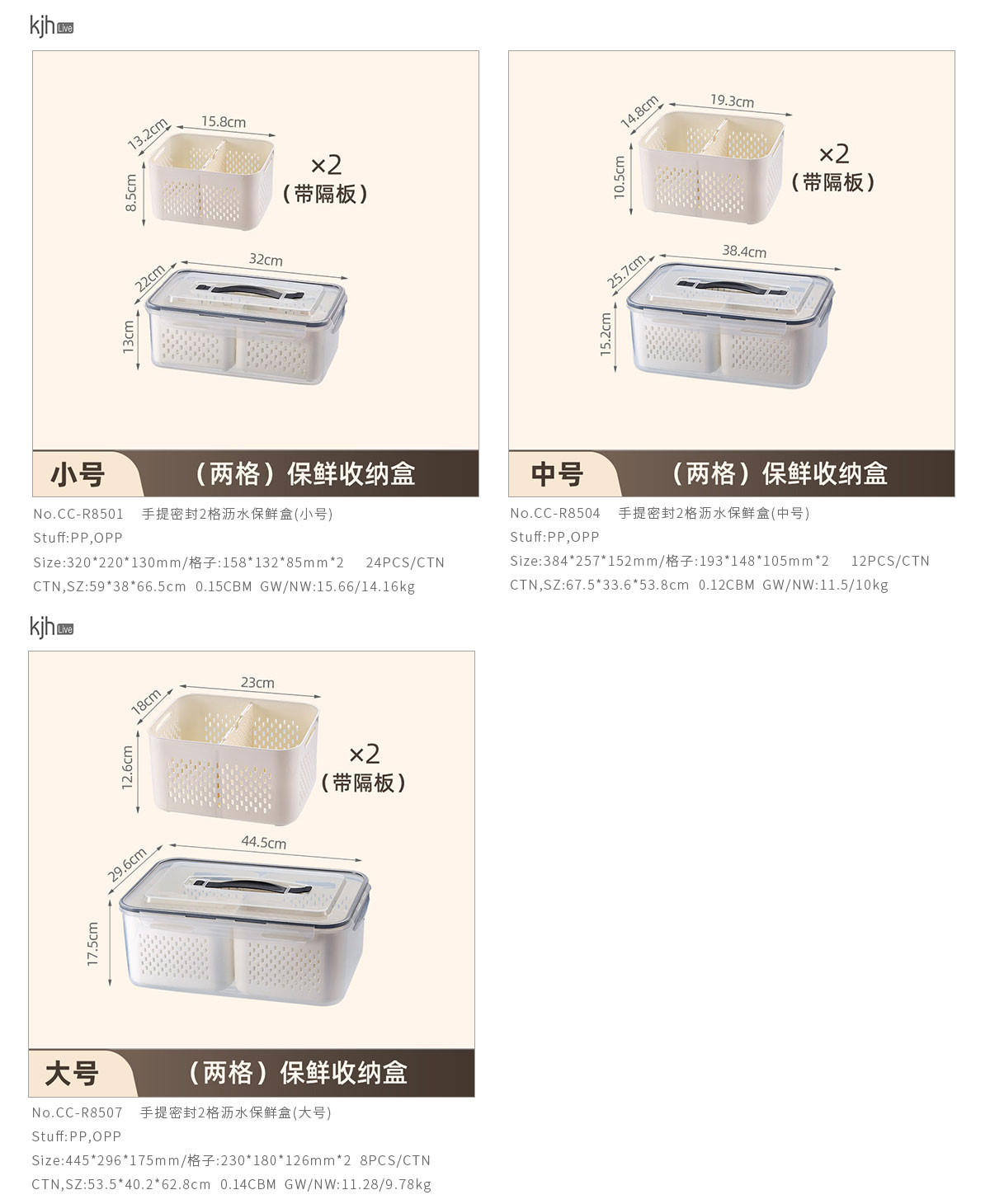手提密封2格/3格/6格瀝水保鮮盒(小號(hào)/中號(hào)/大號(hào))