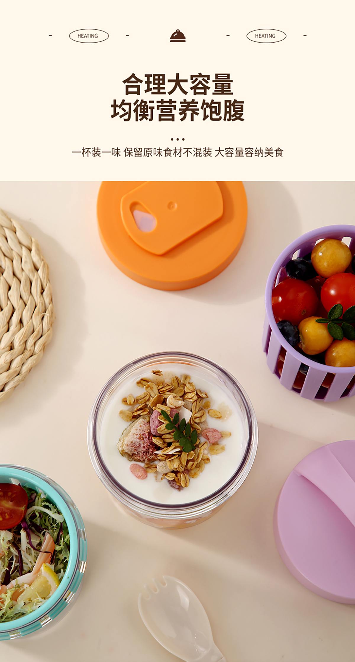 便攜式水果沙拉杯500ml/500+200ml(配PP折疊叉勺)