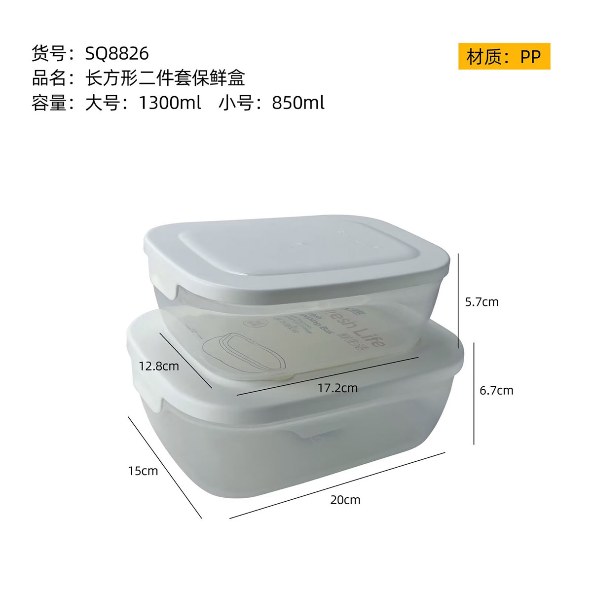 Size: SQ-8826(二件套):中號(hào):172*128*57mm/850ml 大號(hào):200*150*67mm/1300ml