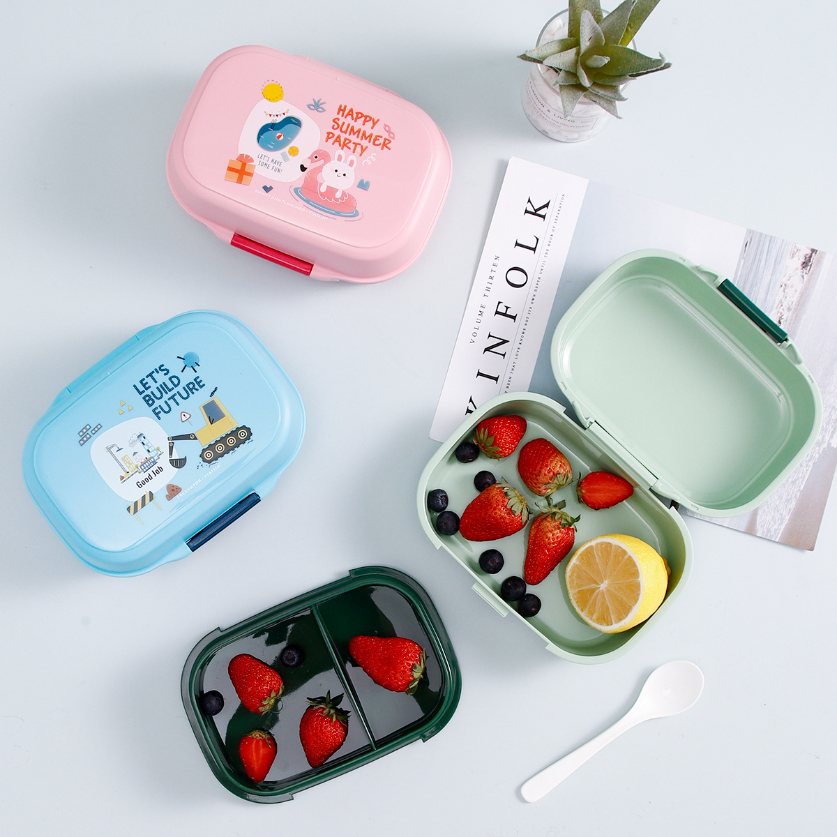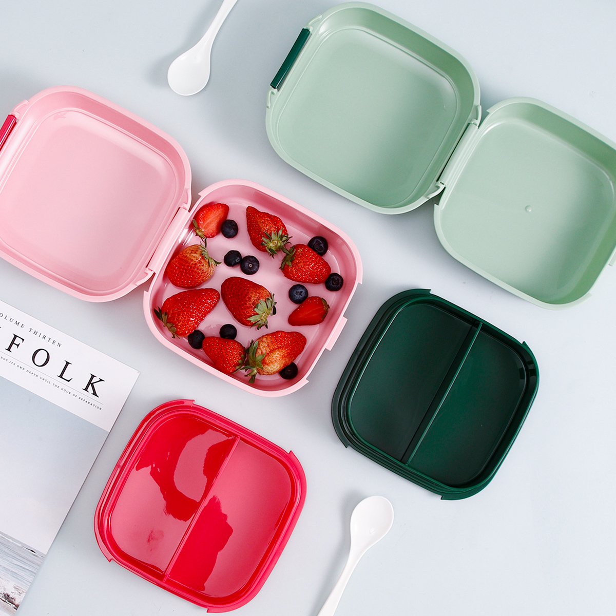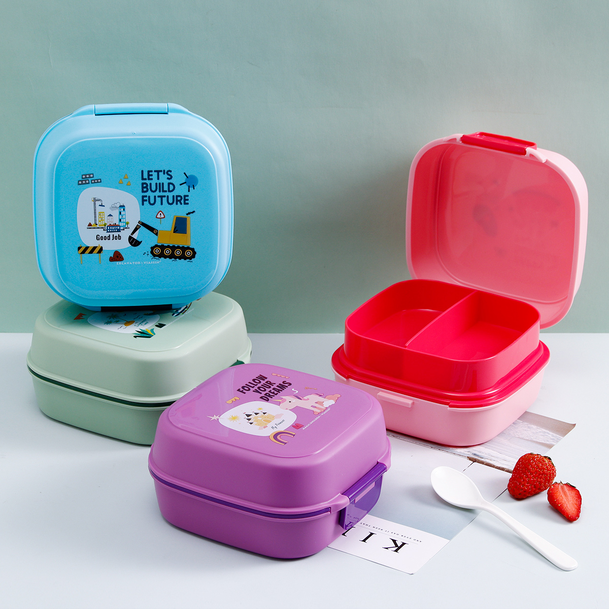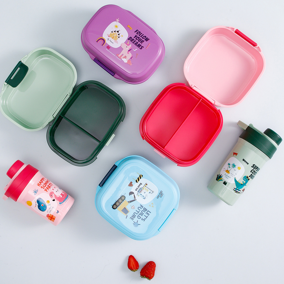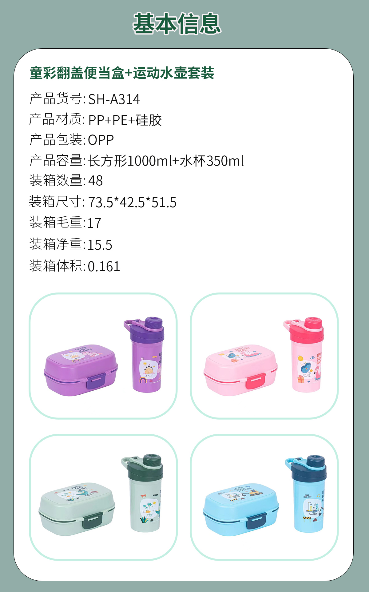 童彩翻蓋便當(dāng)盒+運(yùn)動(dòng)水壺套裝(長方形/正方形1000ml+水杯350ml)