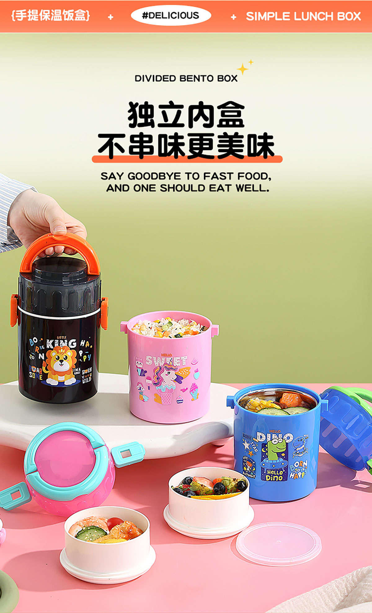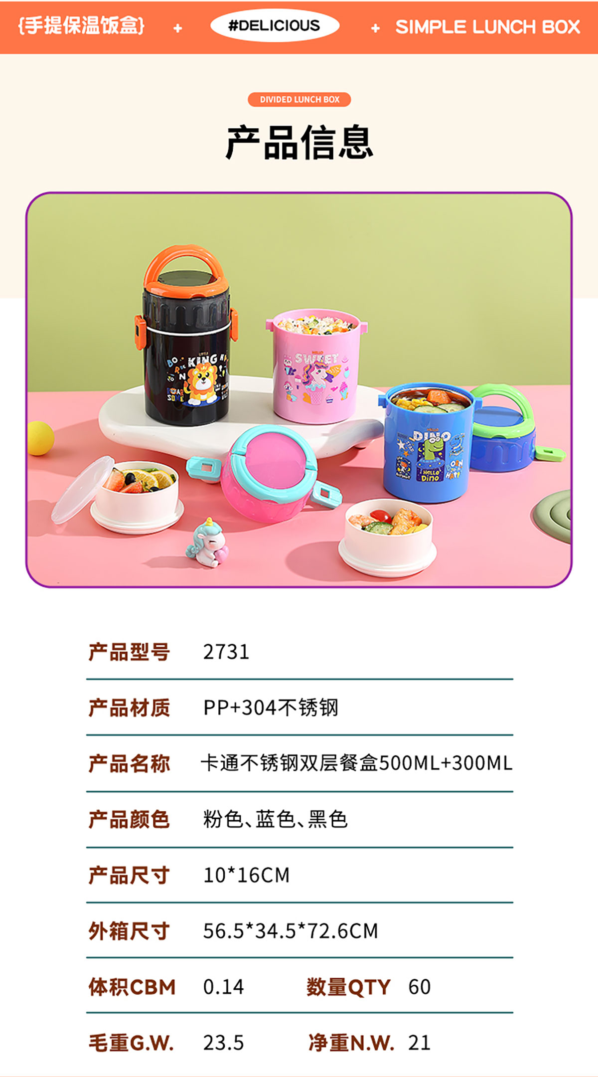 卡通不銹鋼雙層餐盒900ml