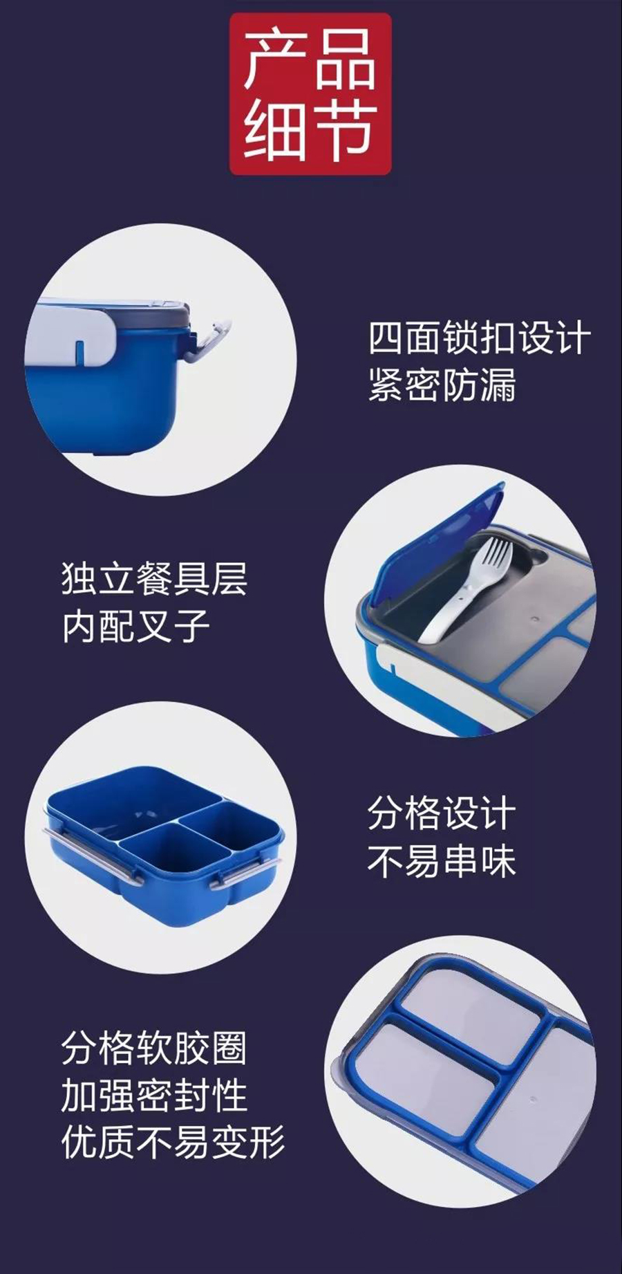 獨立密封三格飯盒2.3L