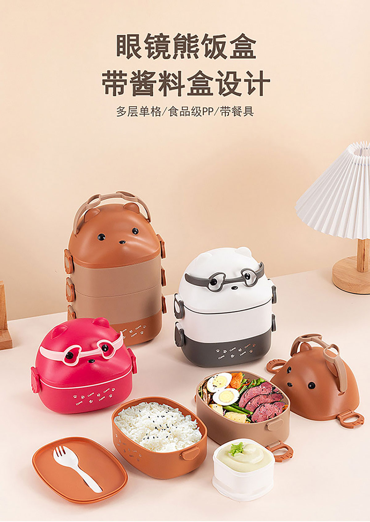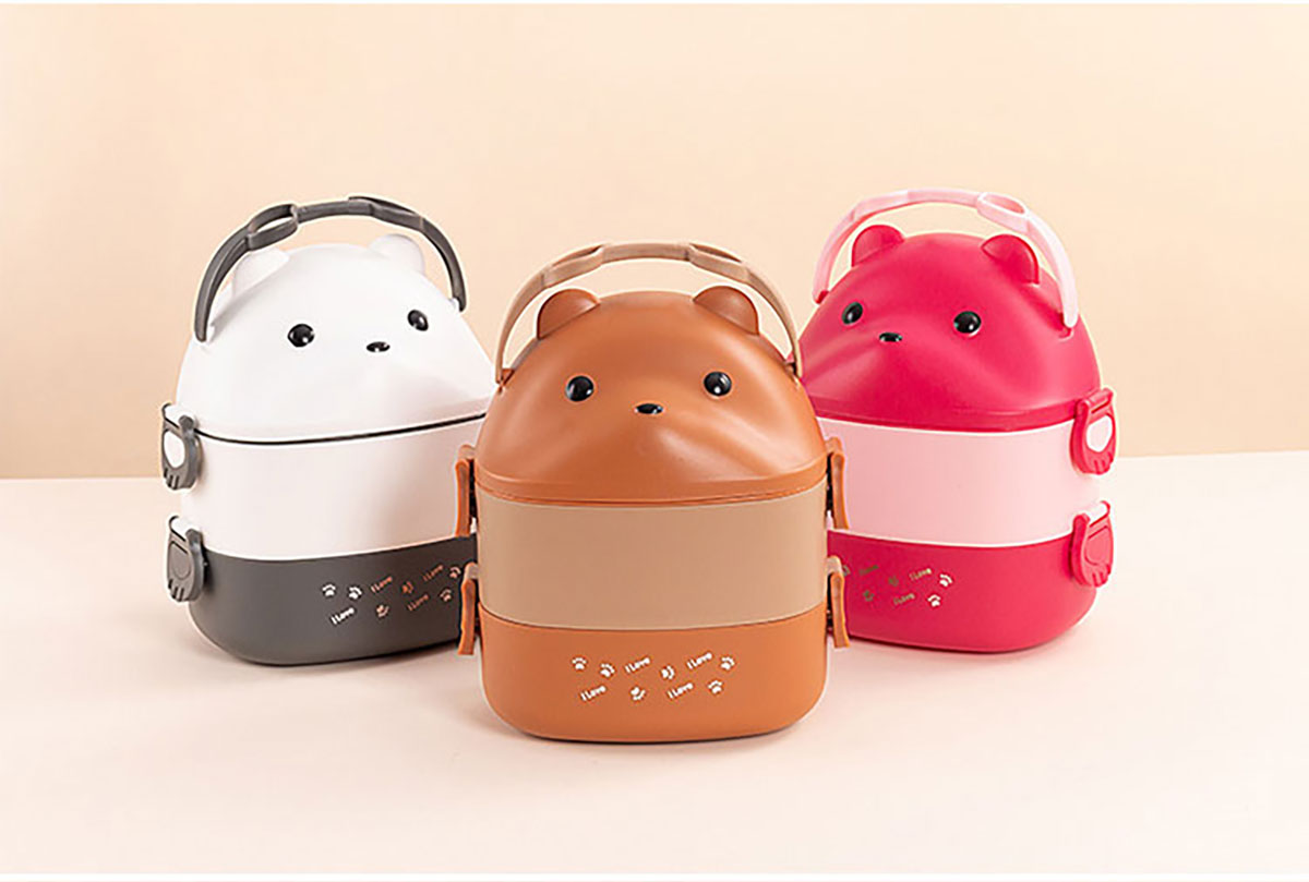眼鏡熊長方形單層/雙層/三層飯盒 (帶內(nèi)格)