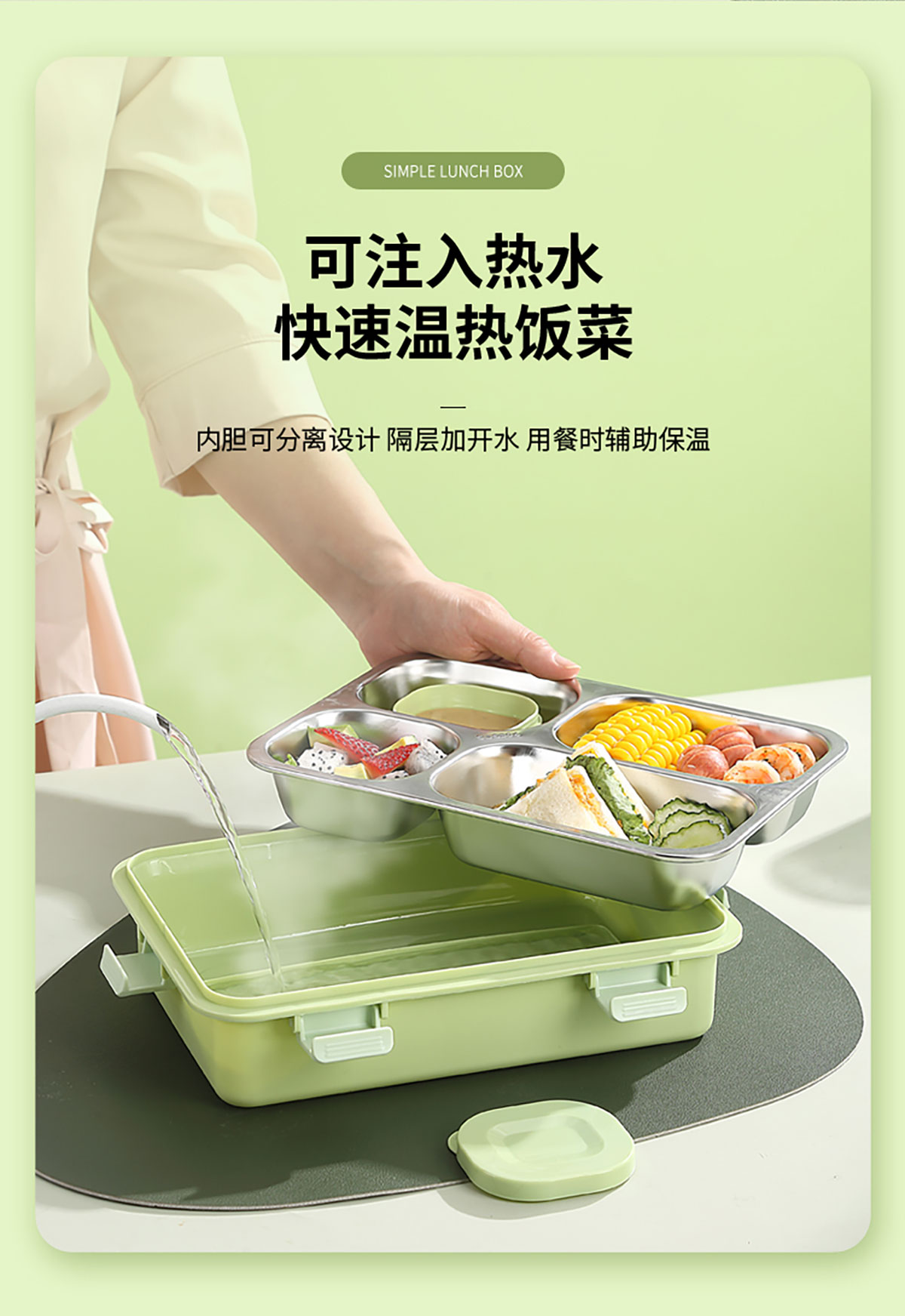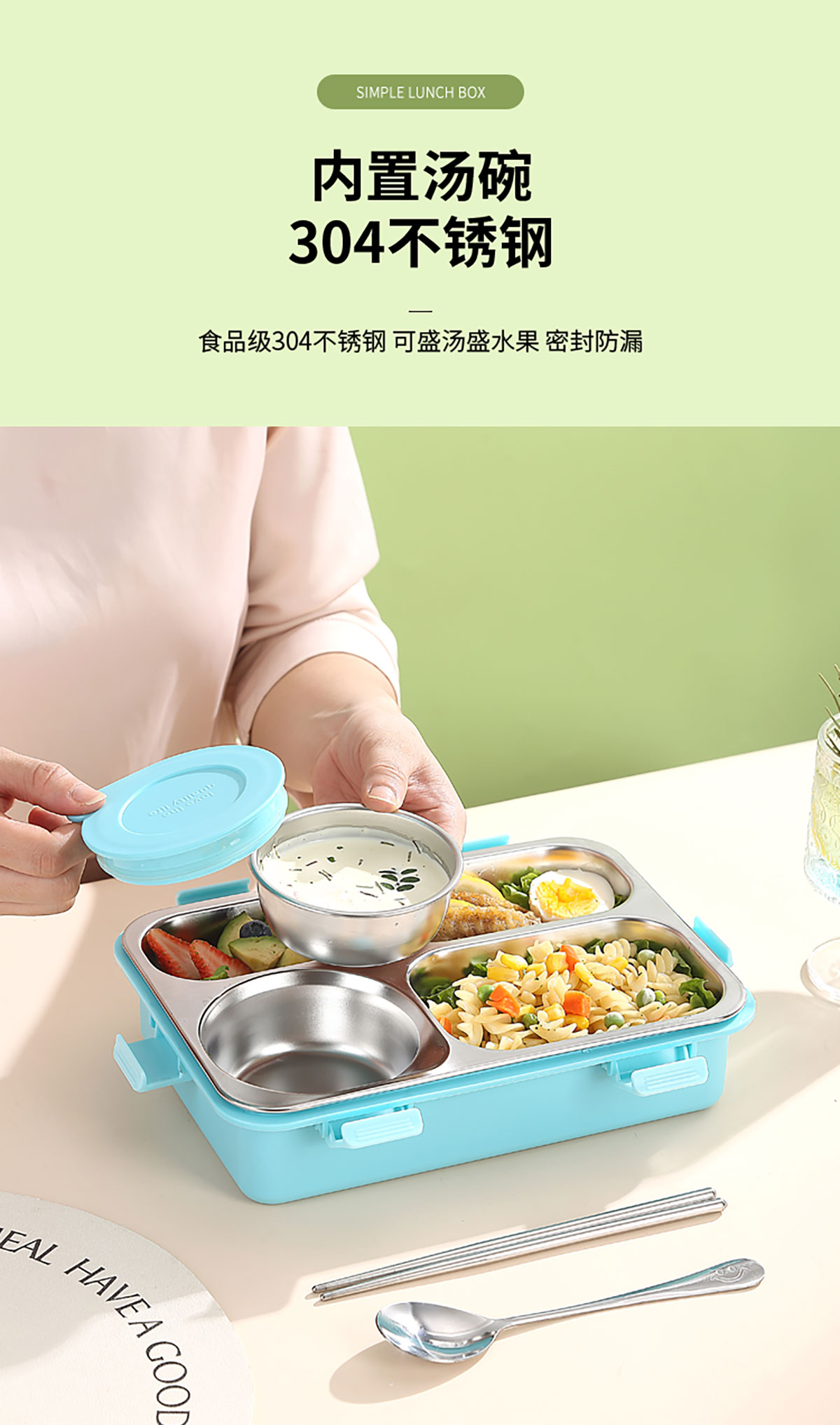 3D噴繪大三格/四格帶醬盒/四格帶碗加高不銹鋼餐盒