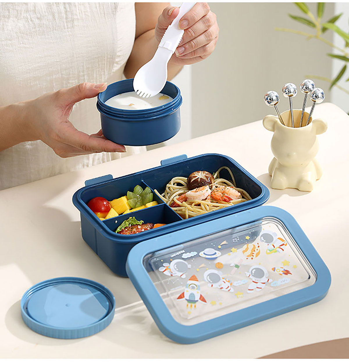 Size: 飯盒:201*137*71mm/1000ml 湯杯:?96*51mm/250ml