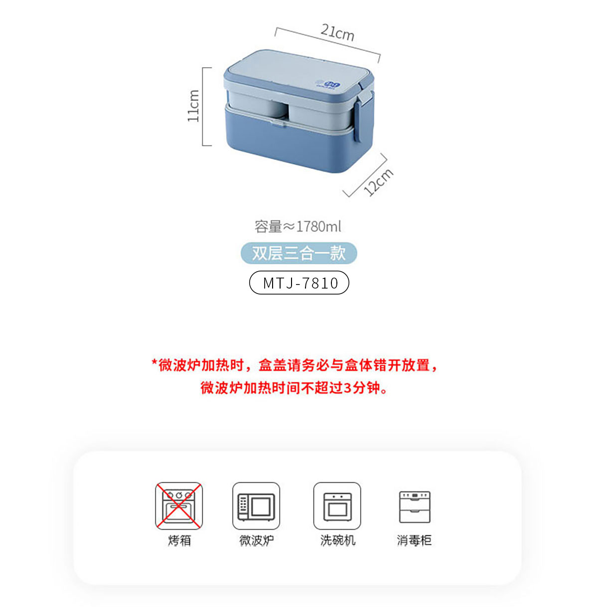 MTJ-7808(單層):210*120*82mm/1200ml