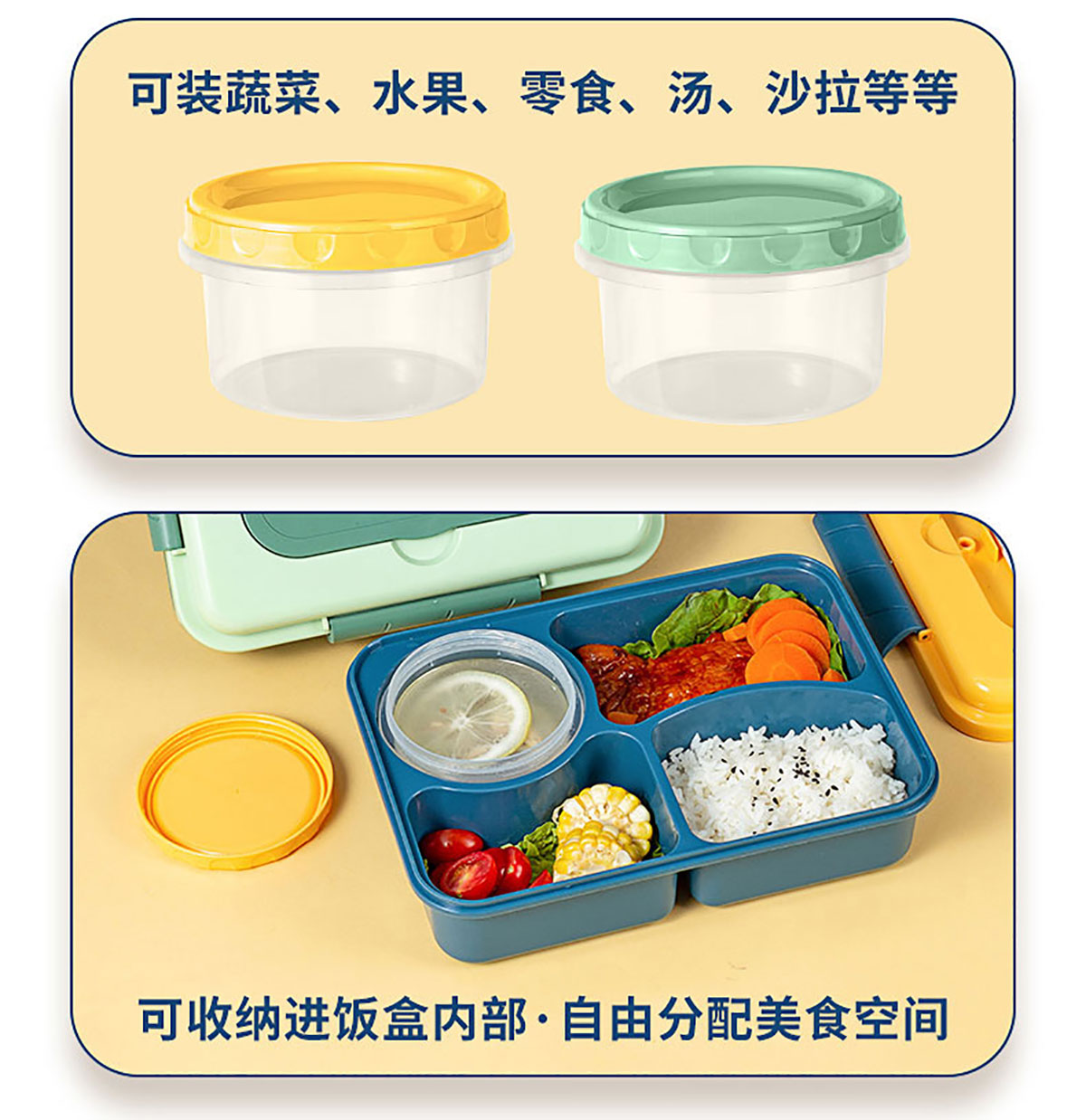 SHX-2256(四格帶湯碗):飯盒:260*190*80mm 湯碗:Φ90*60mm/250ml