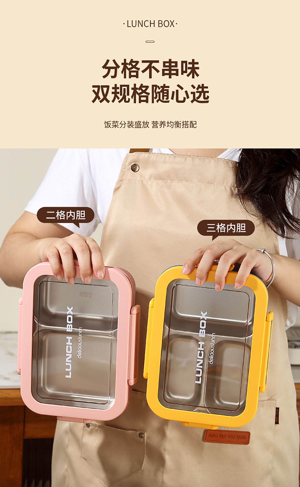 簡約分格不銹鋼飯盒兩格/三格款