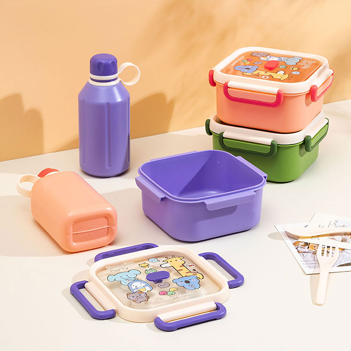 尚趣正方單層飯盒(1000ml)/+圓形/方形運(yùn)動(dòng)水壺(500ml)