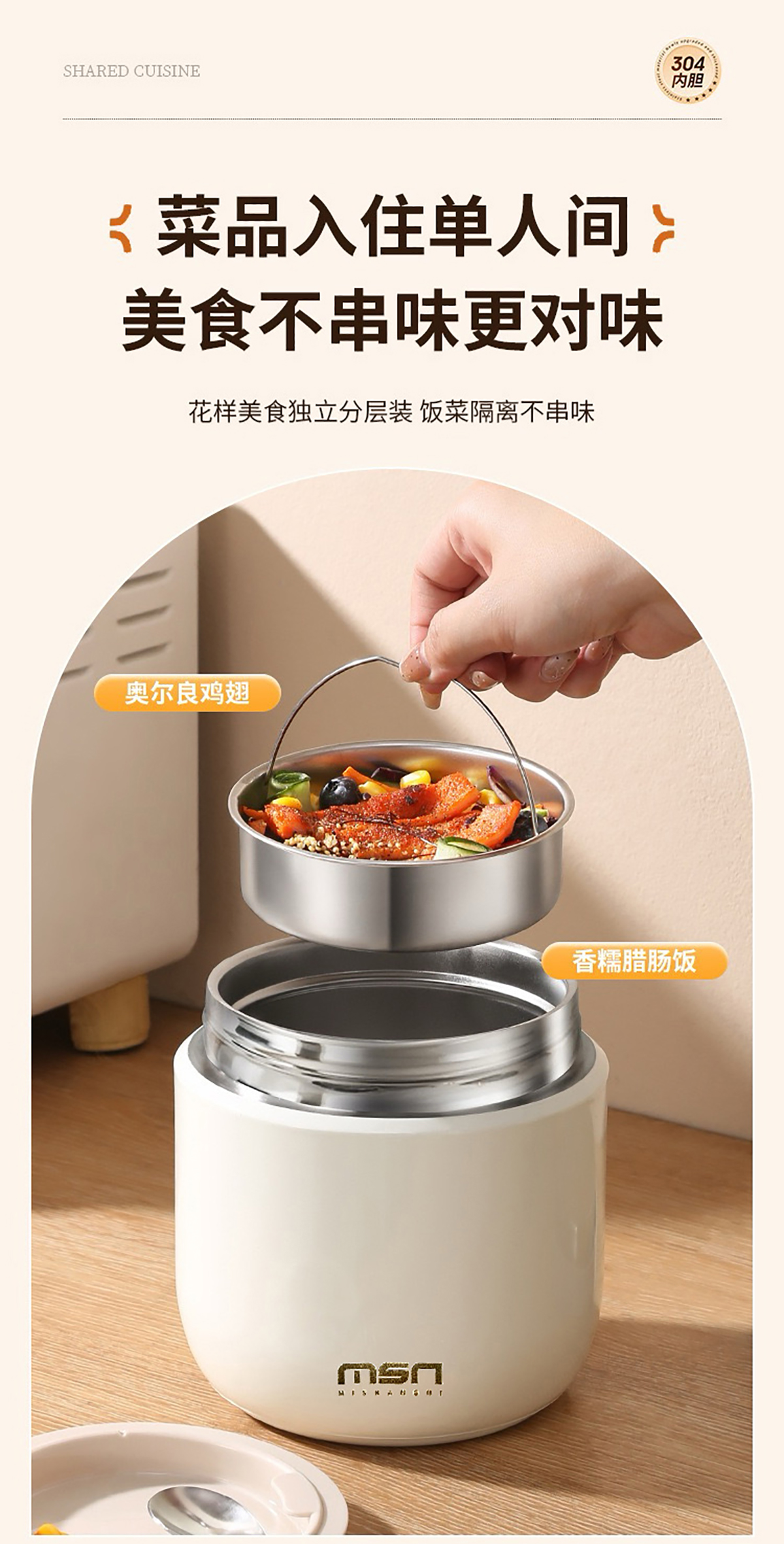1.2L/1.5L304真空防溢雙層飯盒 本色/漸變