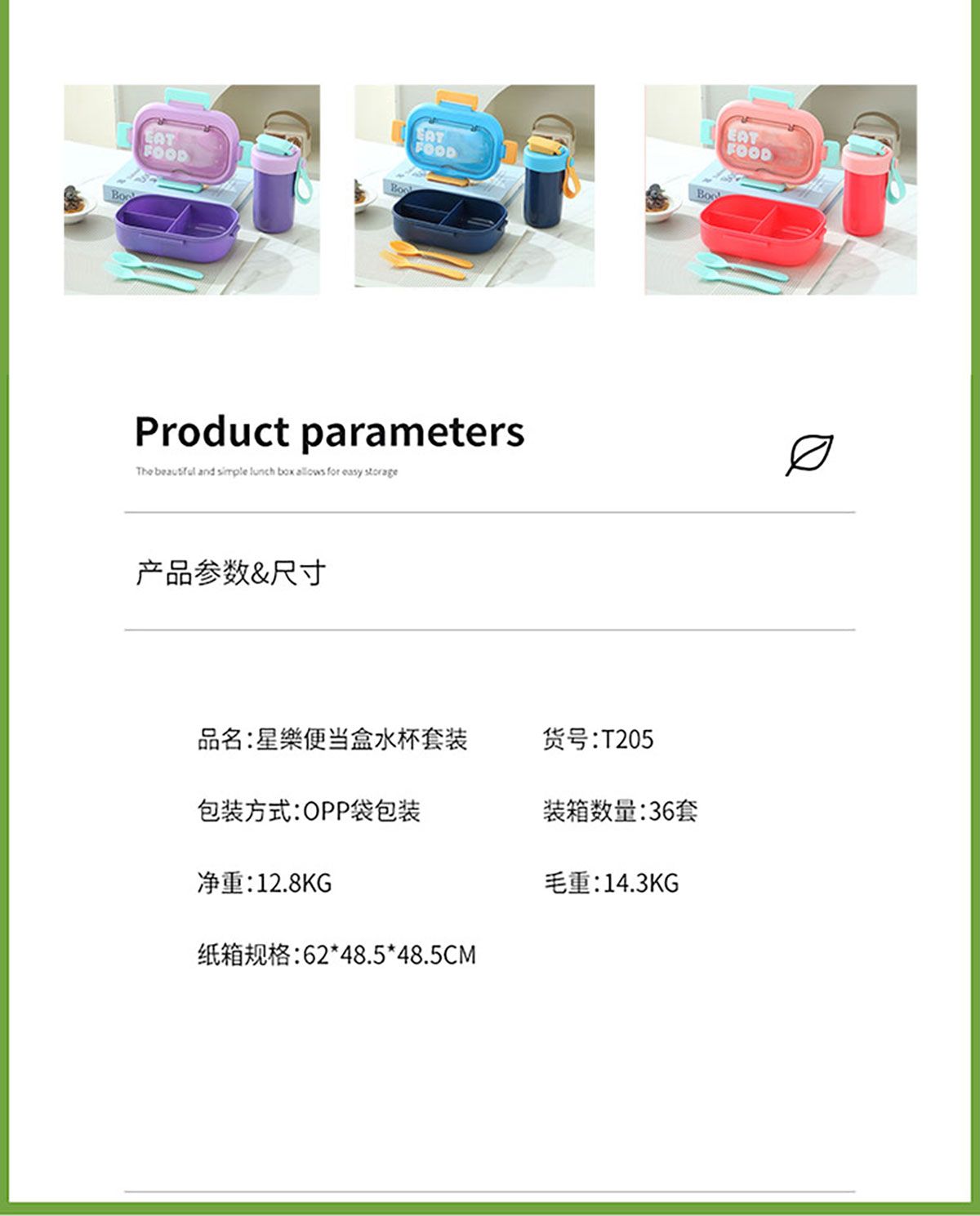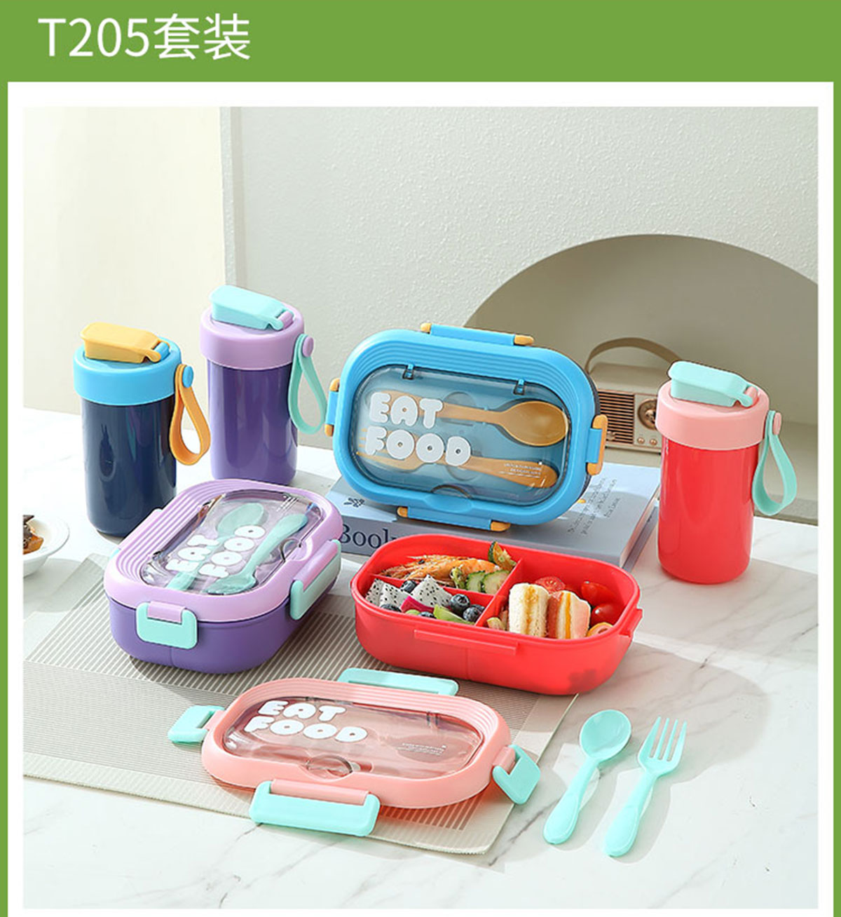 SWY-T205(水杯套裝):飯盒:215*149*72mm/1000ml 水杯:直徑82*高161mm/480ml