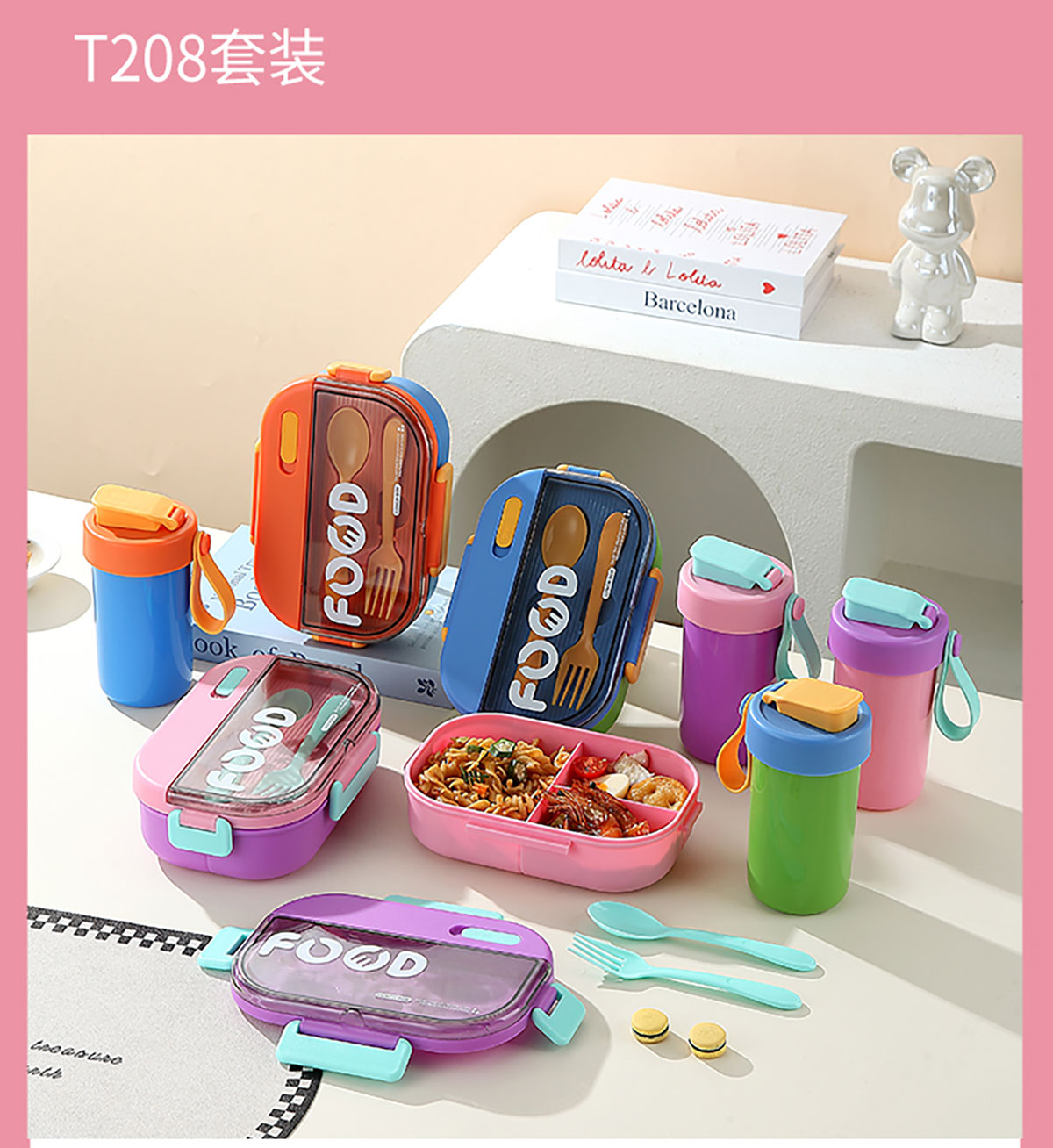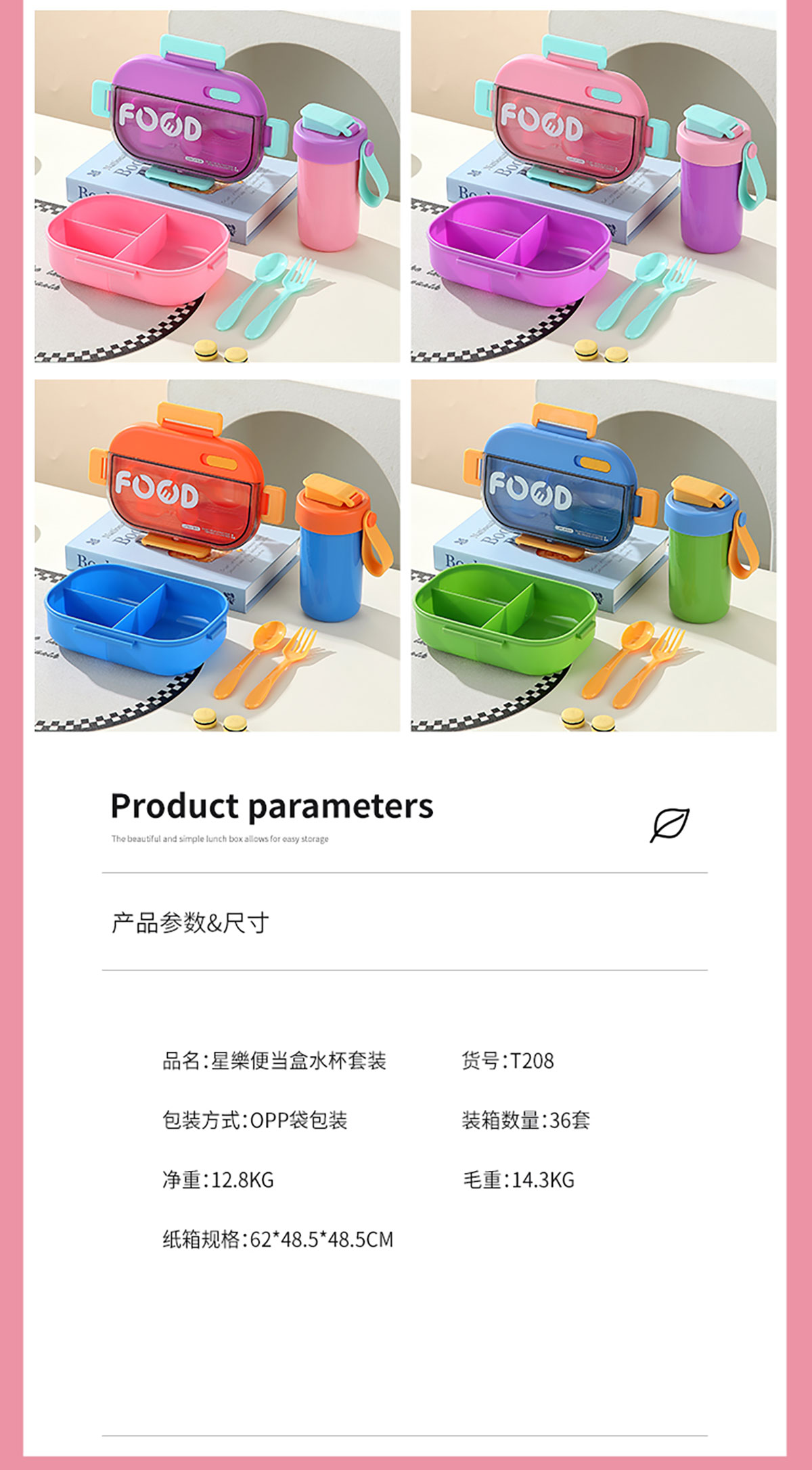 SWY-T208(水杯套裝):飯盒:215*149*71mm/1000ml 水壺:直徑82*高161mm/480ml