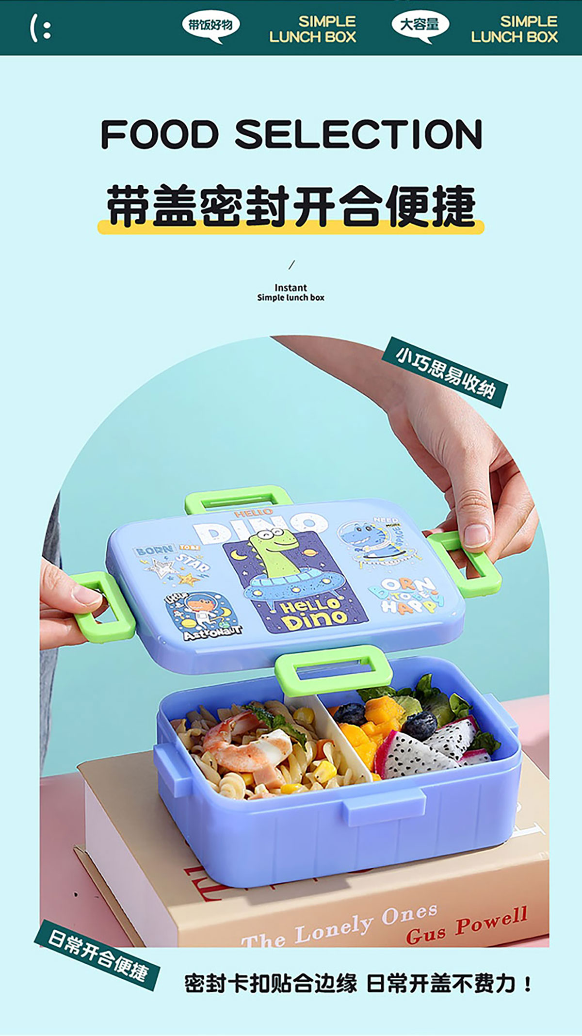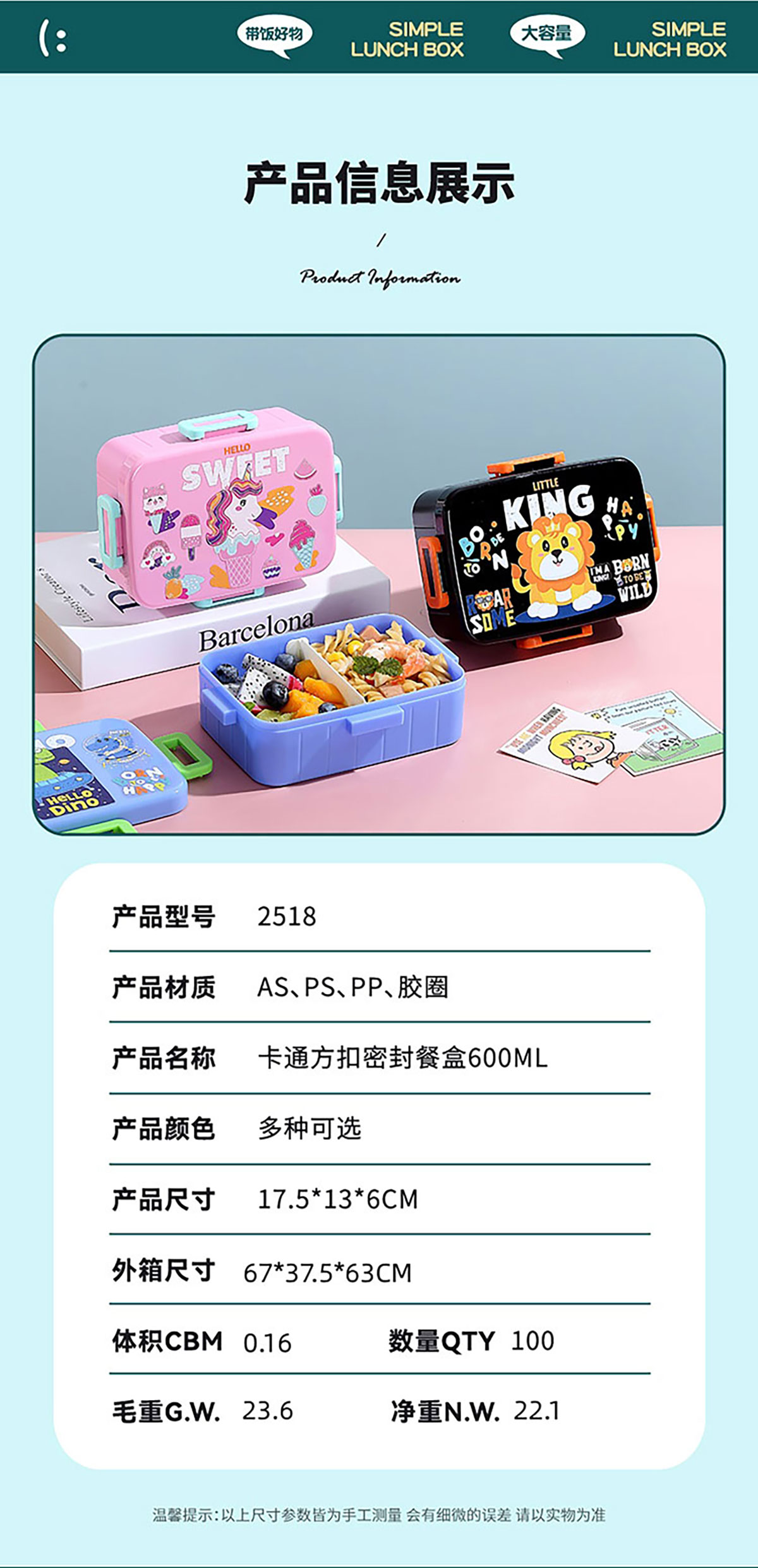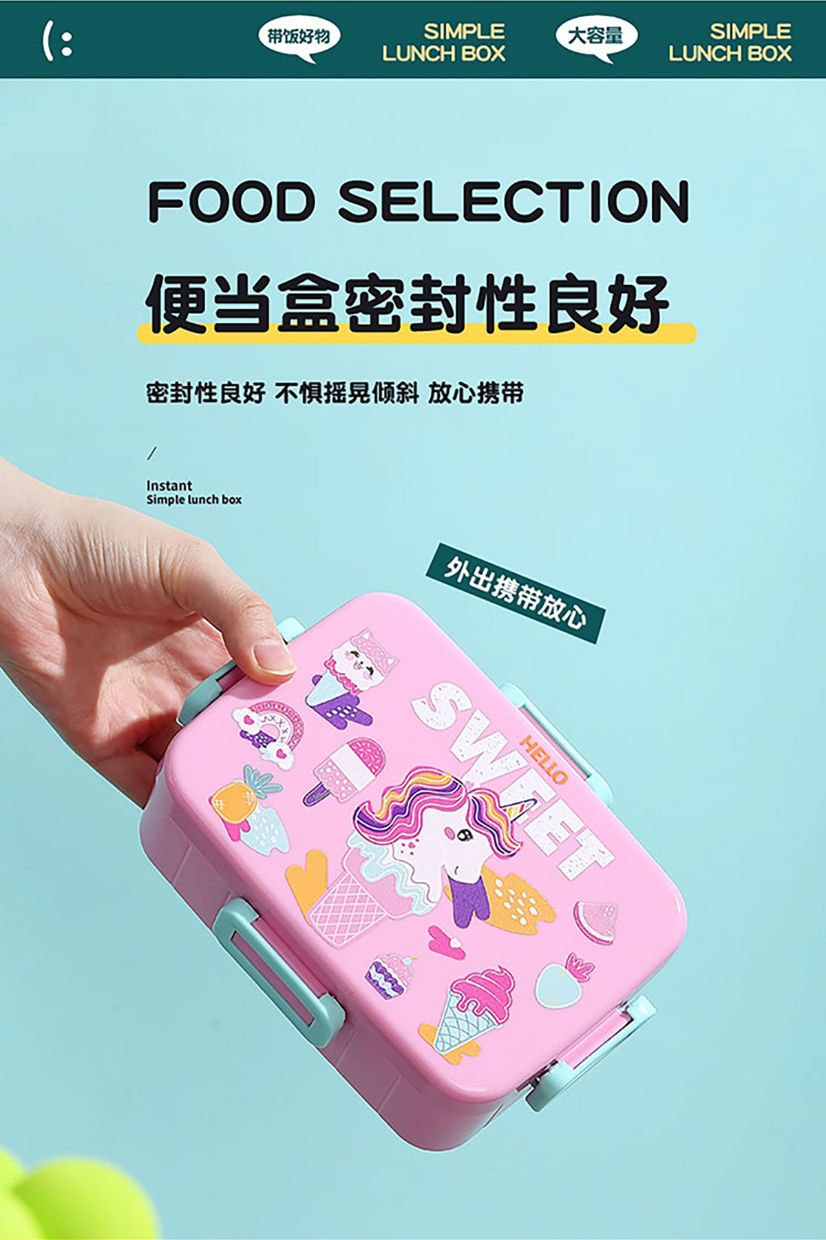 卡通方扣密封餐盒600ml+沙拉碗80ml+PP勺