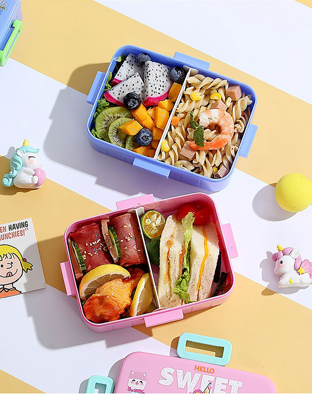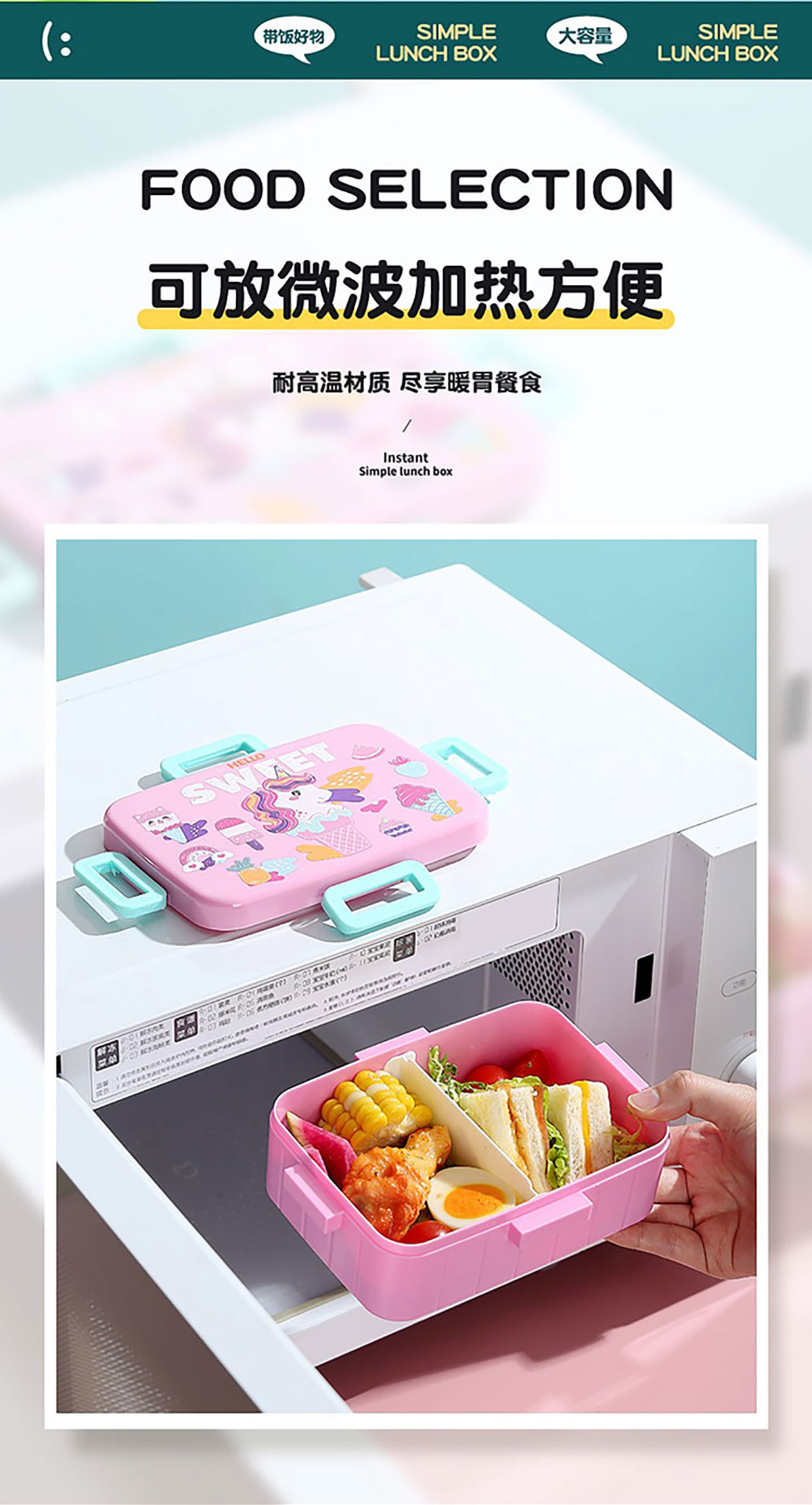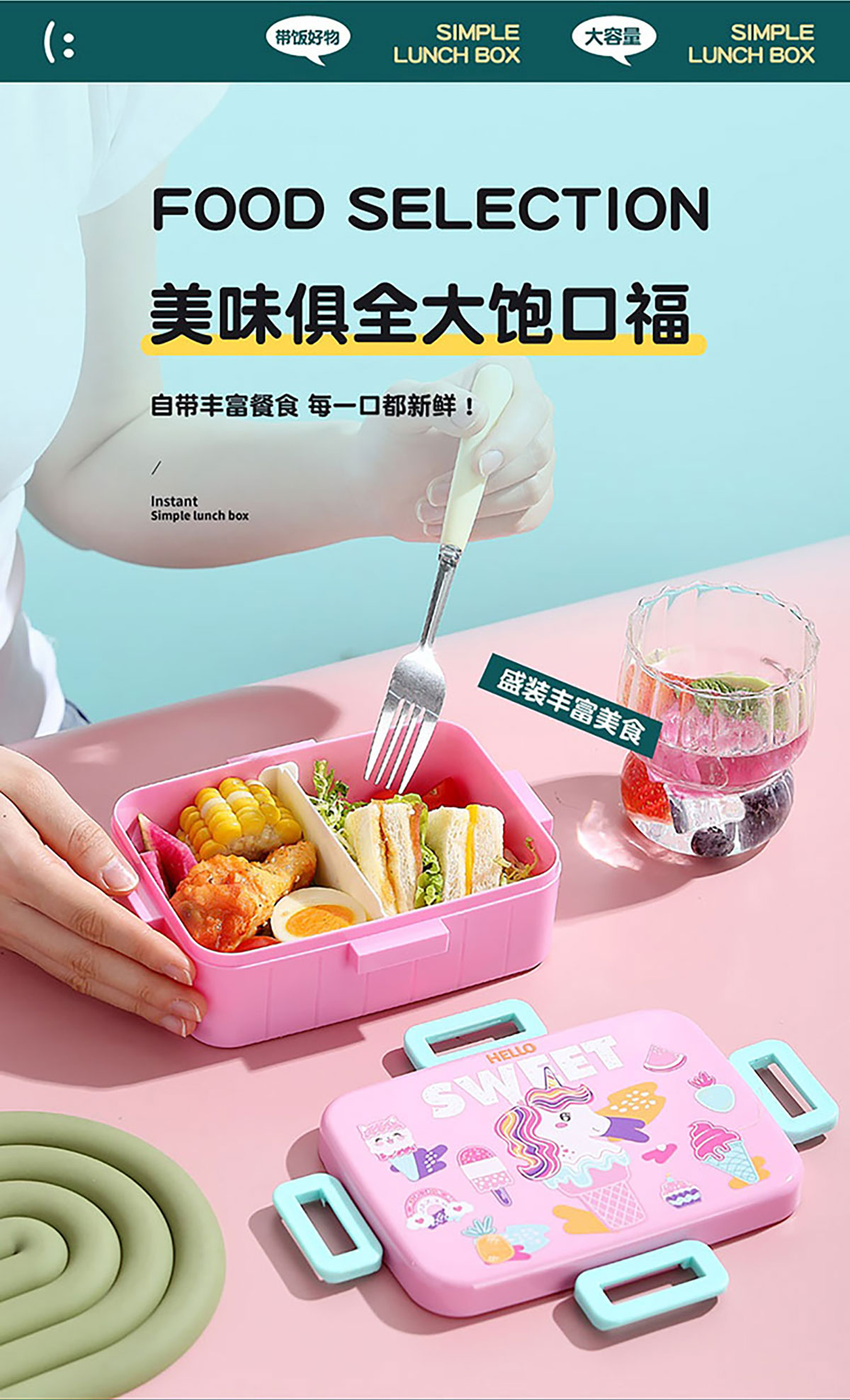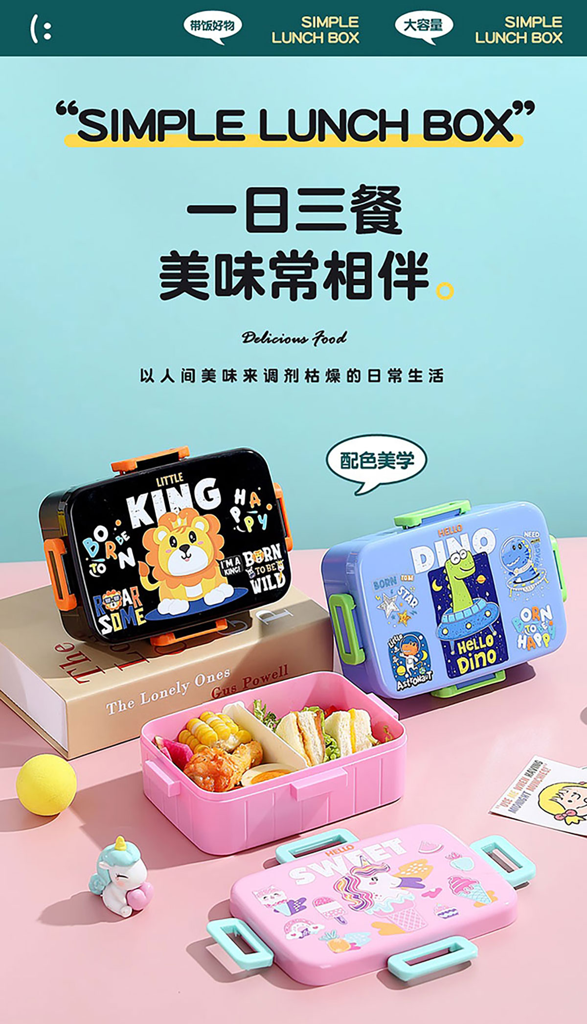 卡通方扣密封餐盒600ml+沙拉碗80ml+PP勺