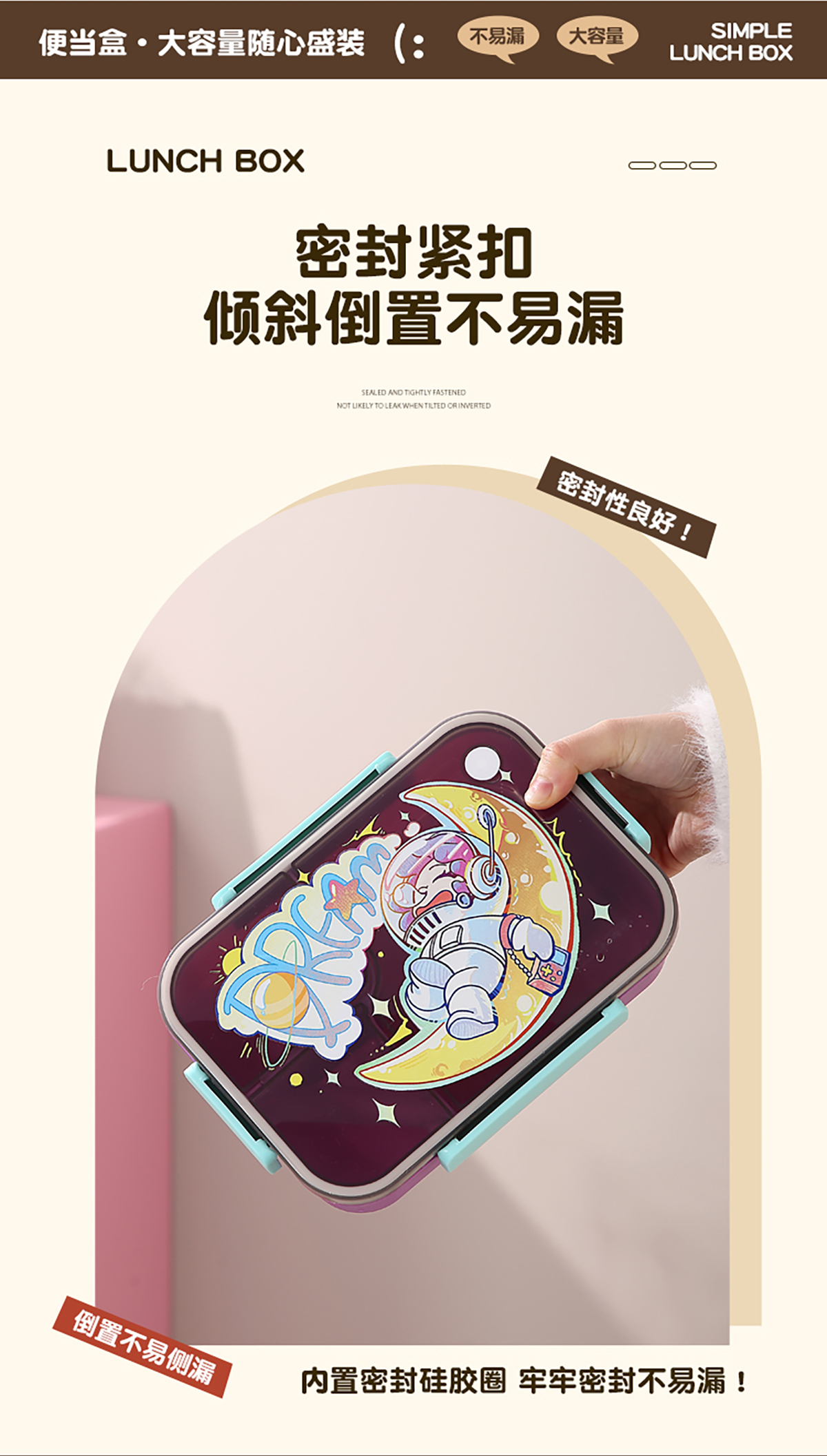 卡通透明蓋分格飯盒1450ml